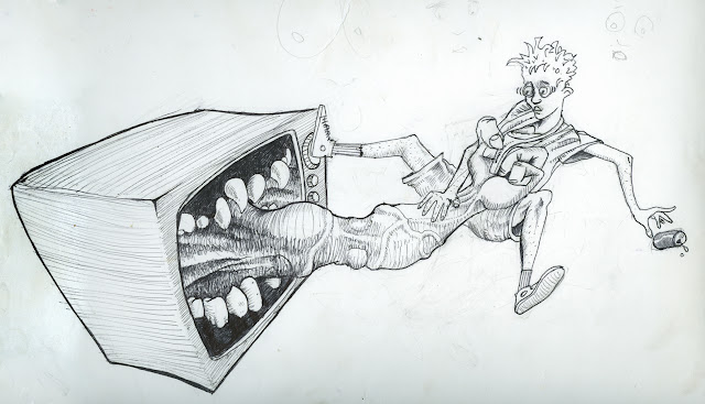 A few months back D&Q asked me to send some high school drawings for a project they were working on. In the end none of it got used (maybe because I waited about a month before actually looking for stuff, and they had a tight turnaround), but once I got around to fishing out my old sketchbooks I had a lot of fun combing through them. I'll probably post more in the next few days, including some actual comics, and a few (of the hundreds and hundreds) skateboarding drawings.